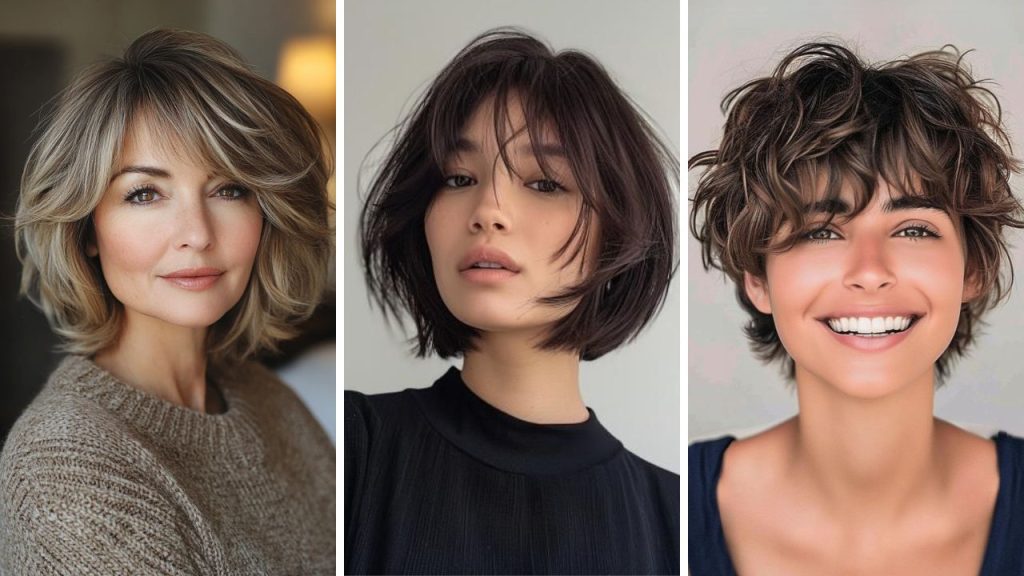 An elegant chin-length cut with softly inward-curling ends provides instant sophistication. Optional short curtain bangs add a touch of Parisian chic that beautifully softens angular features.